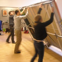 Un dispositif en aluminium, démontable, modulable et transportable créé sur la demande de la compagnie "des mots dans les branches" pour leur spectacles "les aventuriers de la source sacrée".