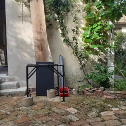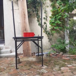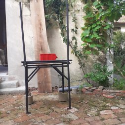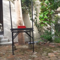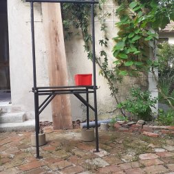 Ce petit stand a été réalisé pour un photographe qui souhaite exposer ses images lors de marché artisanaux.