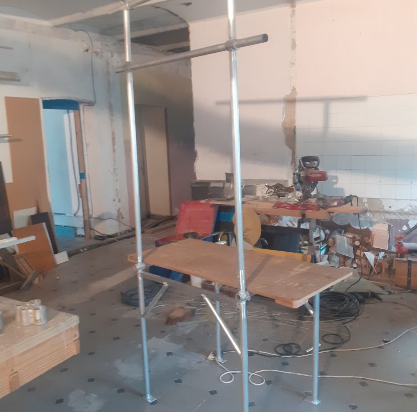 Il devait être démontable et facilement transportable dans une petite voiture, aisé à monter et démonter, modulaire pour répondre aux différents besoins, ...